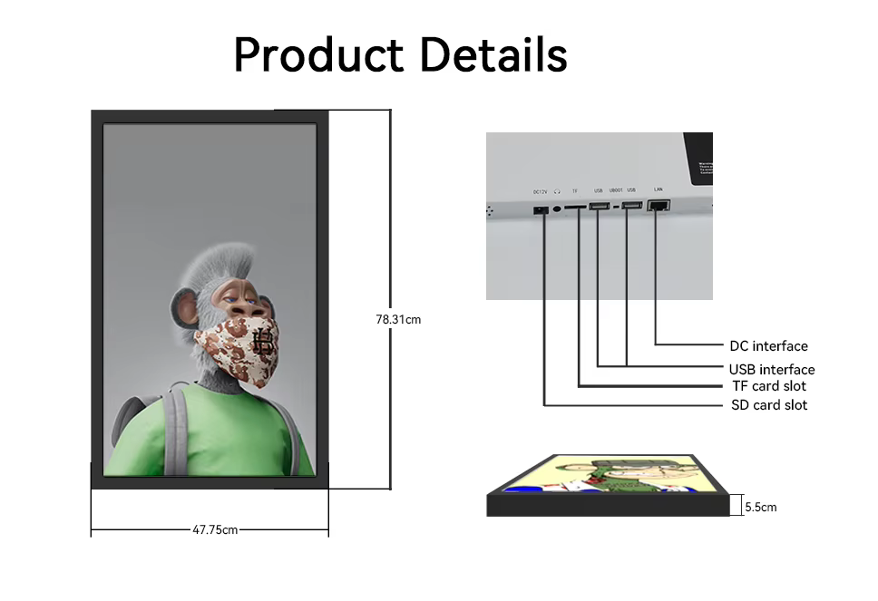 WiFi horma mehe baten muntatze-seinale digitalak 18.5 / 21.5 / 32/12 / 55/65 artearen markoa erakusten du? Ez begiratu Shenzhen Topadkiosk Bistaratzeko Teknologia Ko., Ltd. Txinan oinarritutako fabrikatzaile eta hornitzaile garrantzitsu gisa, espezializatuta gaude hainbat aplikazioetarako egokitutako seinaleztapen digitaleko produktuak eta irtenbideak eskaintzen.