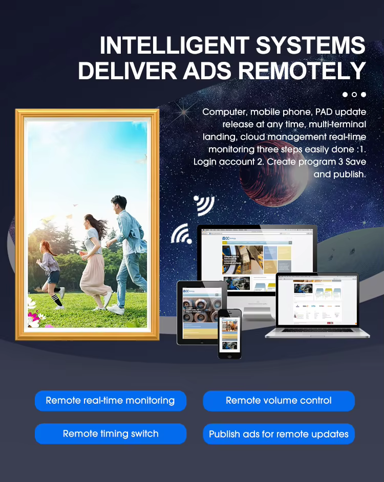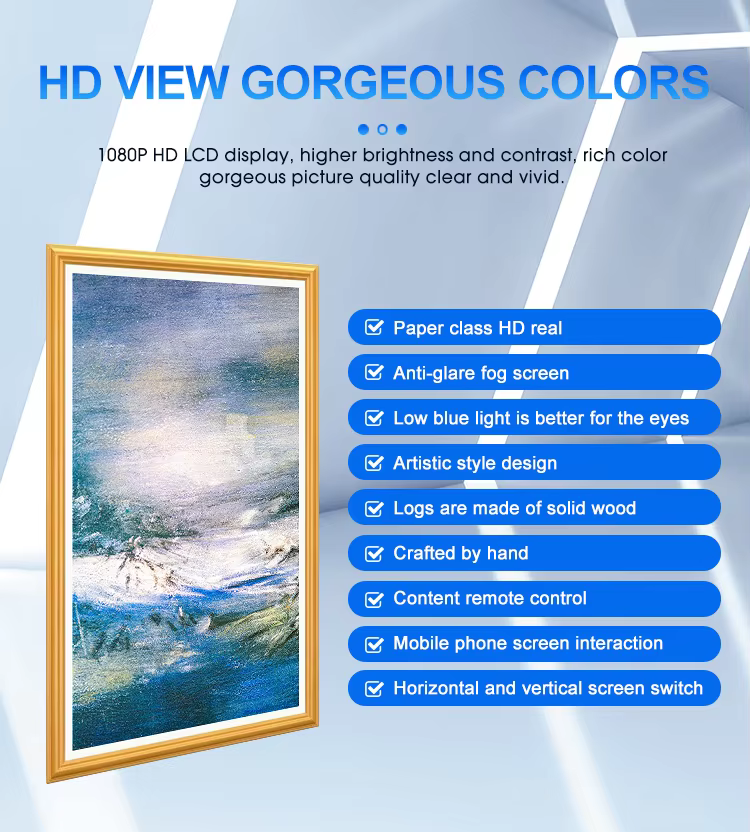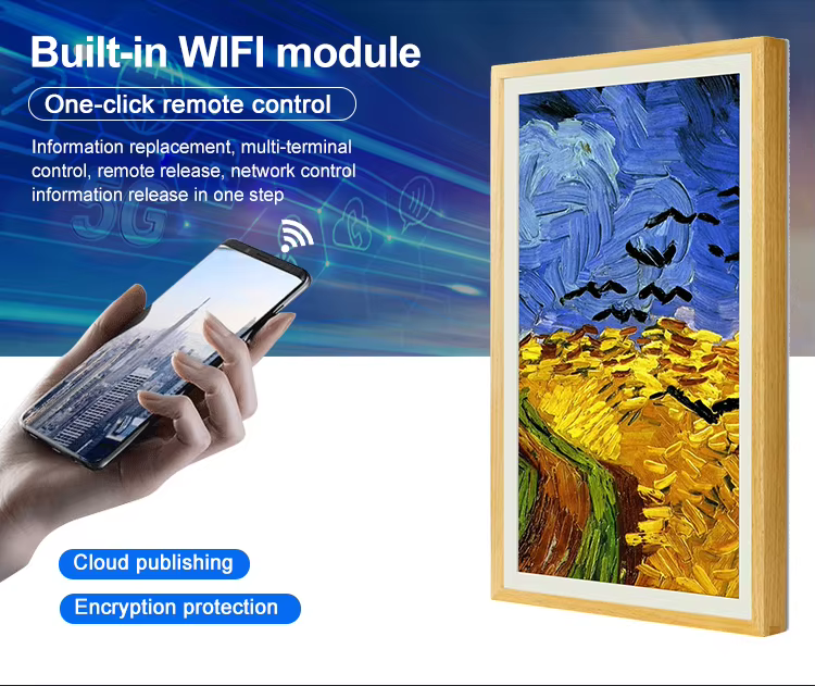 Android WiFi Horma Muntatu Bistaratu Kioskoko Arte Digitaleko Markoa Nft 21.5 32 43 55 65 75 85 100inch 4kdigital Photo Frame Movie Pelikula